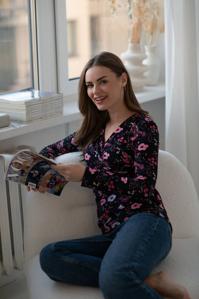 Milk Bar Bluzka do karmienia i ciążowa Milk&Love czarna w kwiaty