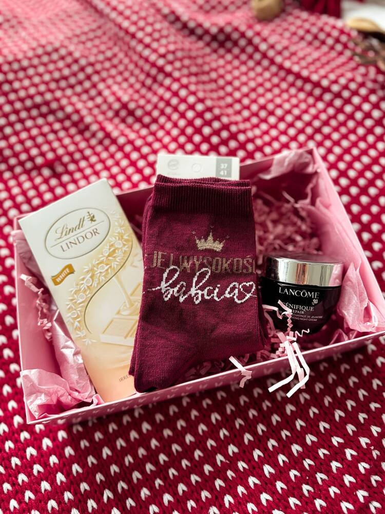 Skarpety damskie wykonane z wysokiej jakości bawełny z ozdobnym napisem z okazji "Dnia Babci"