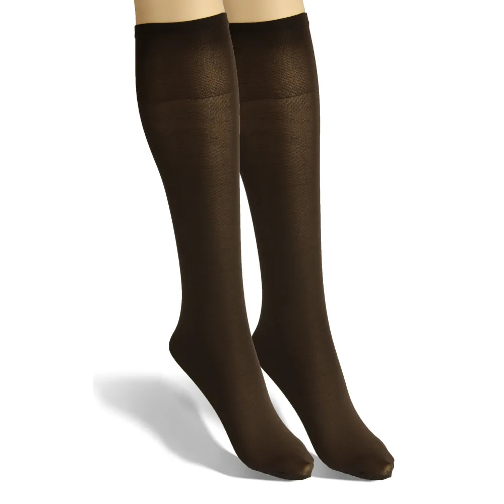 Podkolanówki damskie wykonane z miękkiej mikrofibry. Szeroki nieuciskający ściągacz zapewnia pełny komfort noszenia. Idealne zarówno na co dzień jak i do specjalnych stylizacji.
