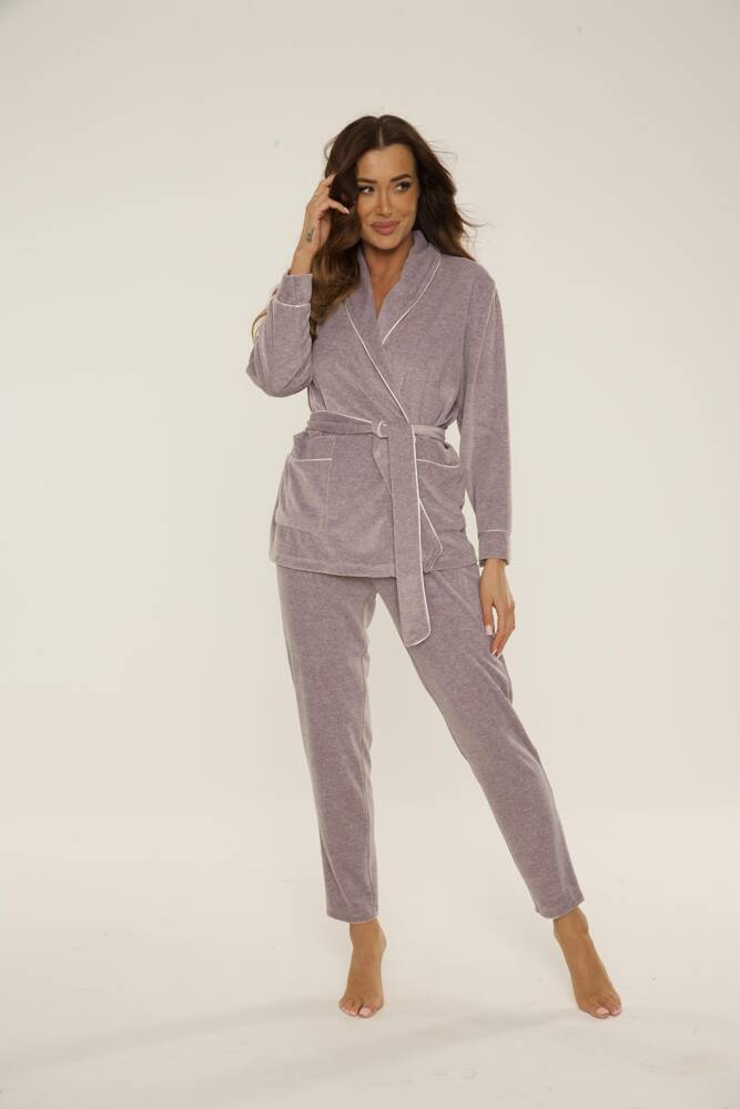 Wygodny dres damski z przyjemnego dla ciała materiału. Bluza wiązana, z długim rękawem.