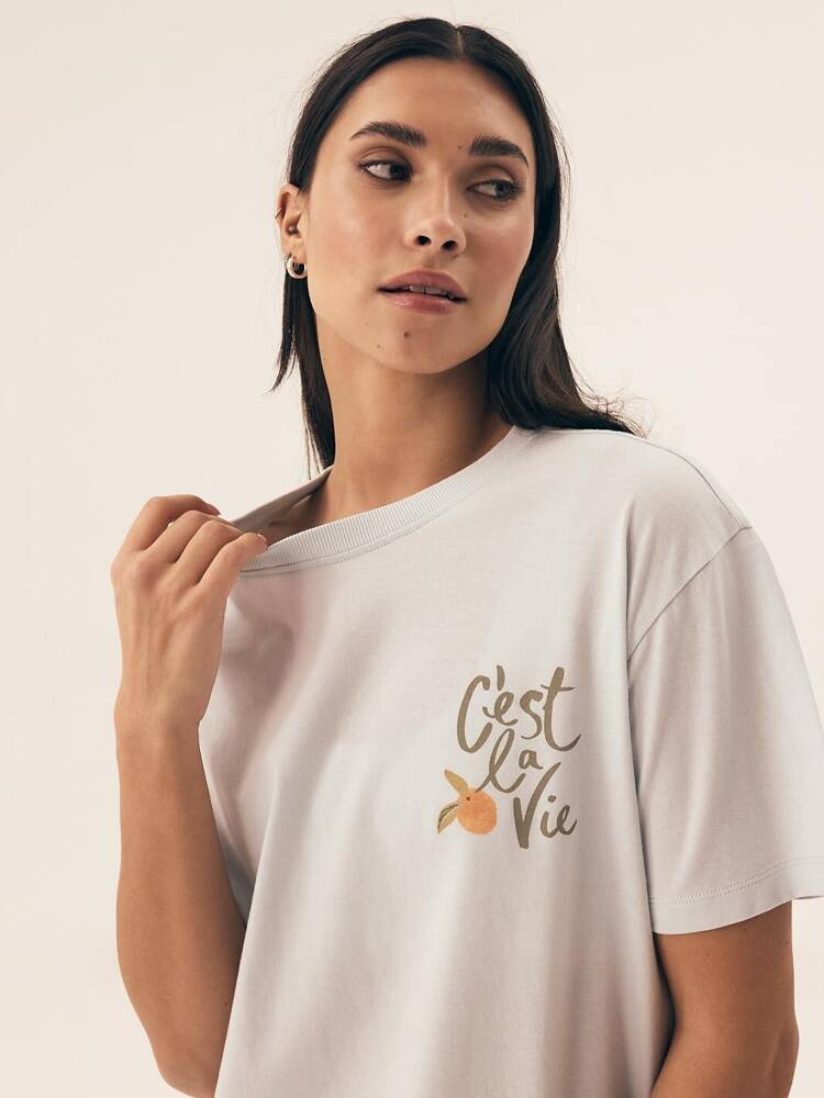 Piżama damska z krótkim rękawem. Luźna koszulka z nadrukiem.
