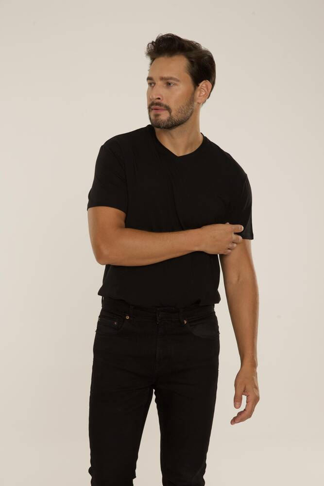 Miękki i wygodny w noszeniu T - shirt Chandler. Wykonany z przyjaznych dla ciała materiałów bawełny i modalu, z dekoltem w kształcie litery "V". Luźny, ale nie za szeroki fason zaskakuje chłodnym w dotyku materiałem i uczuciem świeżości podczas noszenia. Idealna dla mężczyzn uprawiających sport, jak i dla tych ceniących sobie wygodę i elegancję na co dzień.