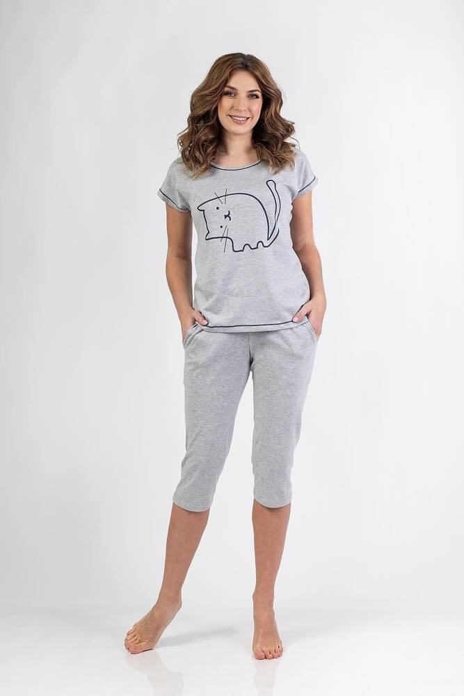 Piżama damska z wysokiej jakości bawełny. Koszulka z krótkim rękawem, dekolt półokrągły