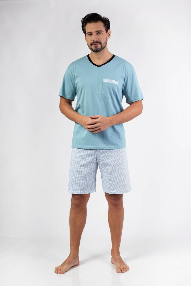 Piżama męska - koszulka z krótkim rękawem i małą kieszonką na piersi