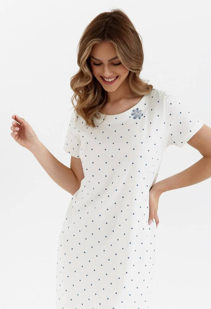 Koszula damska z krótkim rękawem wykonana z wysokiej jakości bawełny w kropki. Wyjątkowo miła dla skóry.