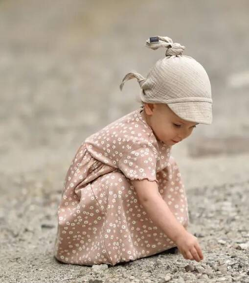 Opinie o Cotton Muślin Chustka z daszkiem wiązana Makaszka - almondine