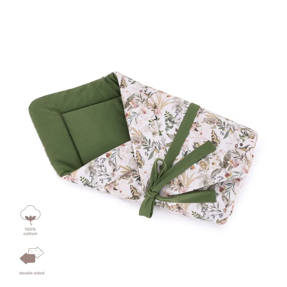 Rozłożony rożek sprawdzi się jako mata do zabawy, kołderka albo przenośny przewijak.