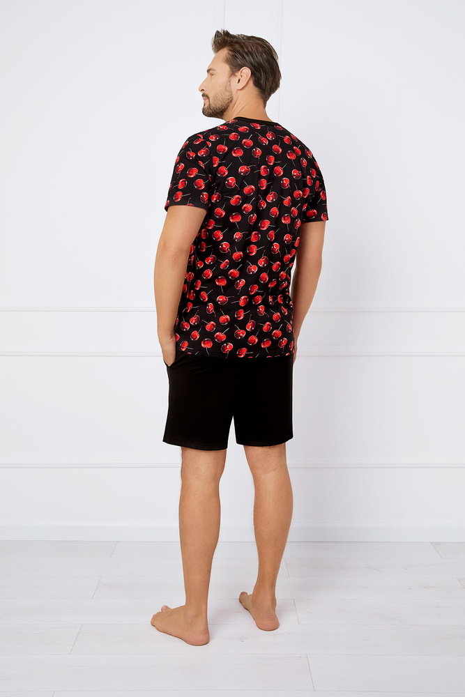 Cherry Piżama Męska krótki rękaw, spodenki Italian Fashion - druk/czarny