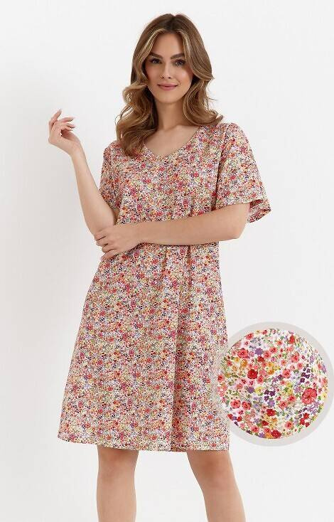Koszula damska z krótkim rękawem wykonana z wysokiej jakości bawełny w kwiatki. Wyjątkowo miła dla skóry.