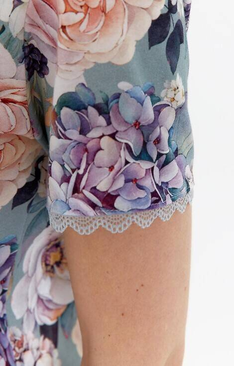 Koszula damska z krótkim rękawem wykonana z wysokiej jakości bawełny w kwiatki. Wyjątkowo miła dla skóry.