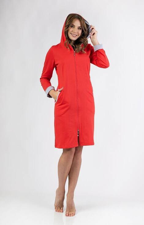 158 Szlafrok Damski z kapturem Regina- czerwony