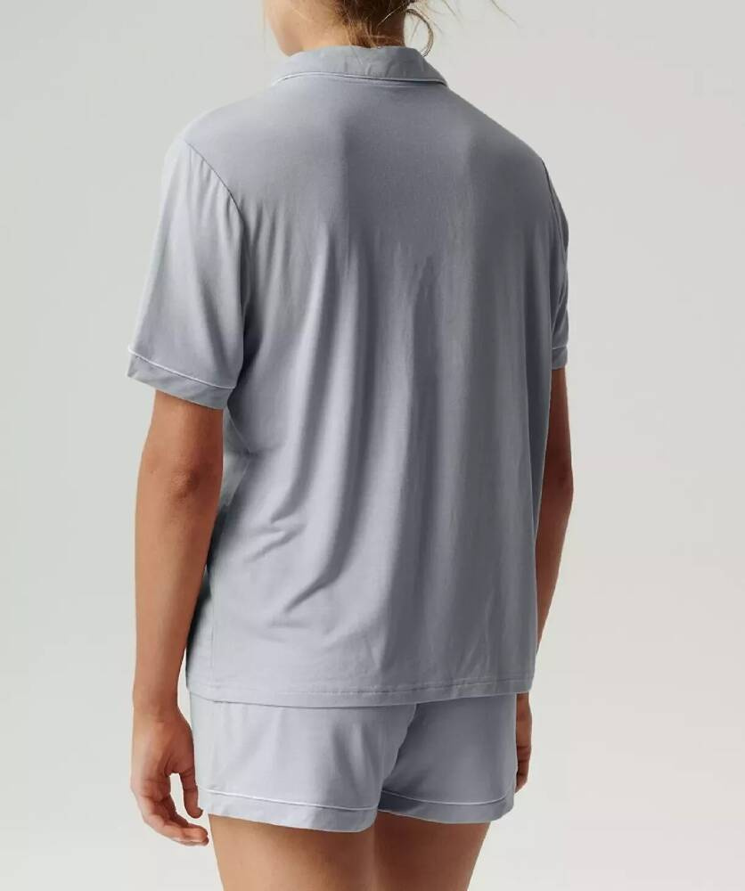 Piżama damska wykonana z miękkiej, przyjemnej w dotyku dzianiny. Koszulka z krótkim rękawem zapinana na guziki. W komplecie krótkie spodenki z wygodną gumą w pasie