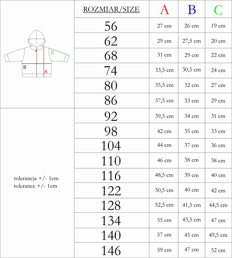 | Rozmiar | Obwód klatki piersiowej | Obwód pasa |
