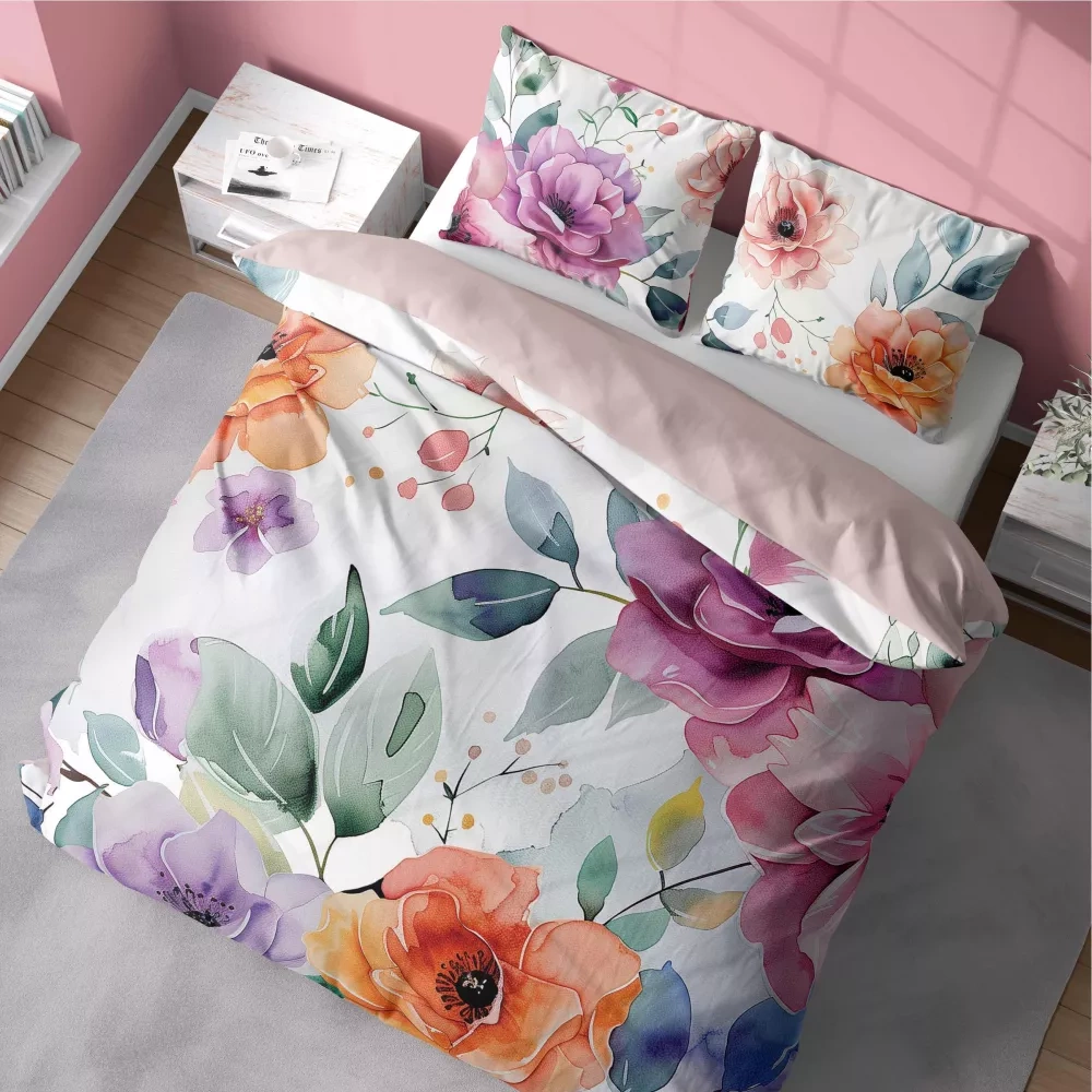 5309 A Pościel z mikrofibry kolorowa kwiaty Detexpol różowy
