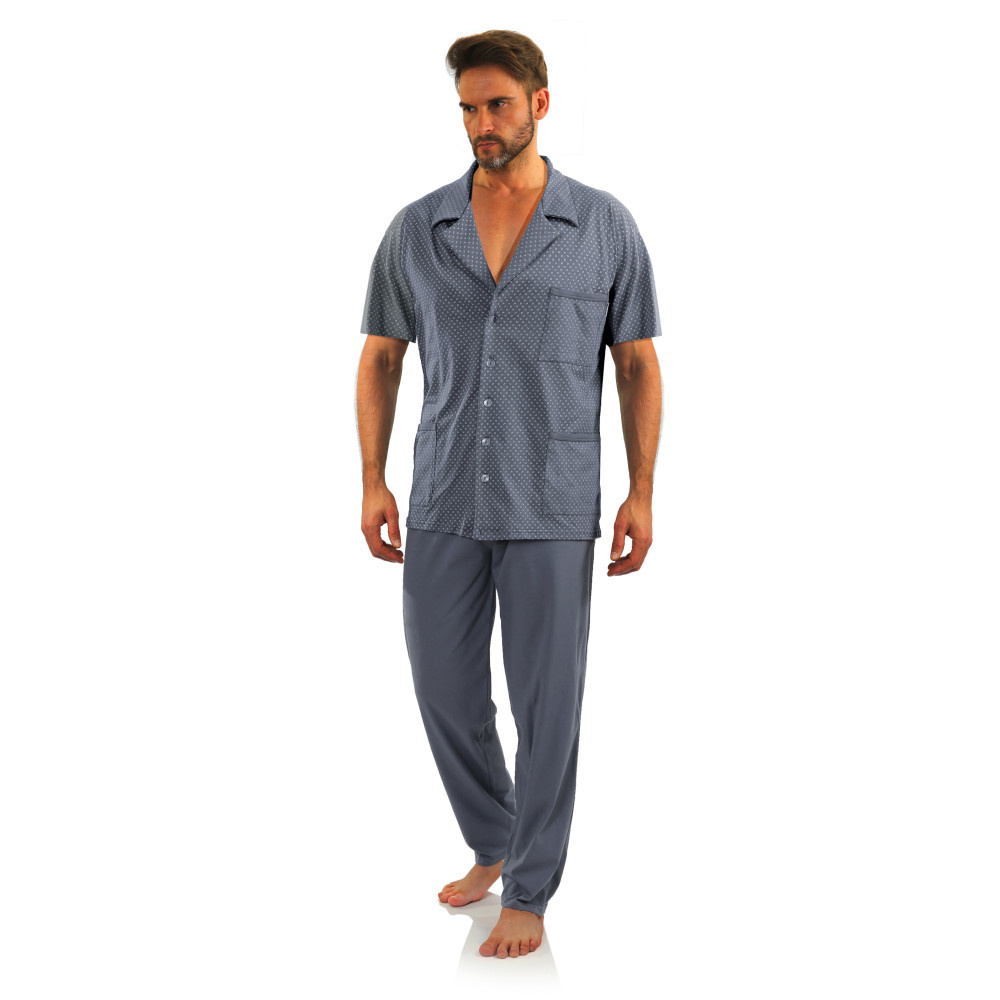 Bawełniana, wyjątkowo wygodna piżama męska o klasycznym kroju i modnej, stonowanej kolorystyce.