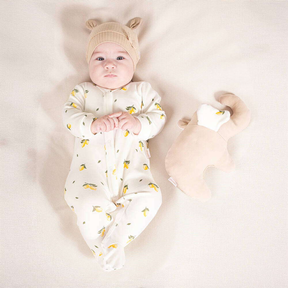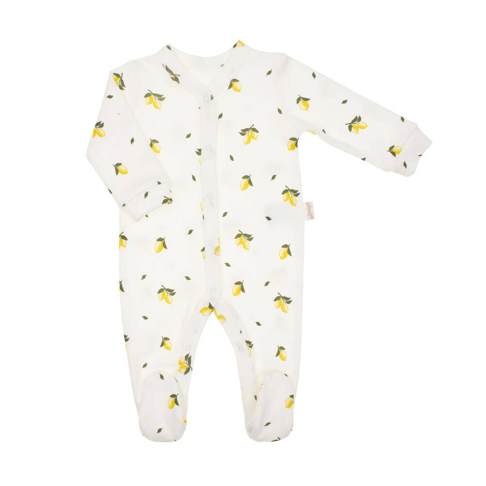 Mięciutki kremowy pajacyk w cytrynki. Zdecydowanie must have każdego rodzica. Zapinany wzdłuż całego ubranka na wygodne bezniklowe napy, by ułatwić przewijanie dziecka. Uszyty z bawełny wysokiej jakości posiadającej certyfikat Oeko-Tex Standard 100 Tekstylia godne zaufania.