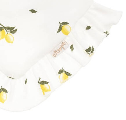 Chusta dla dziewczynki uszyta w kolorze kremowym w cytrynki. Materiał posiada certyfikat Oeko-Tex Standard 100 Tekstylia godne zaufania. Produkt z tyłu zapinany na bezniklowe napy. Dziewczęcego uroku dodaje falbanka. Chusta świetnie sprawdzi się na chłodniejsze dni, jak również, będzie pełnić funkcję dekoracyjną.