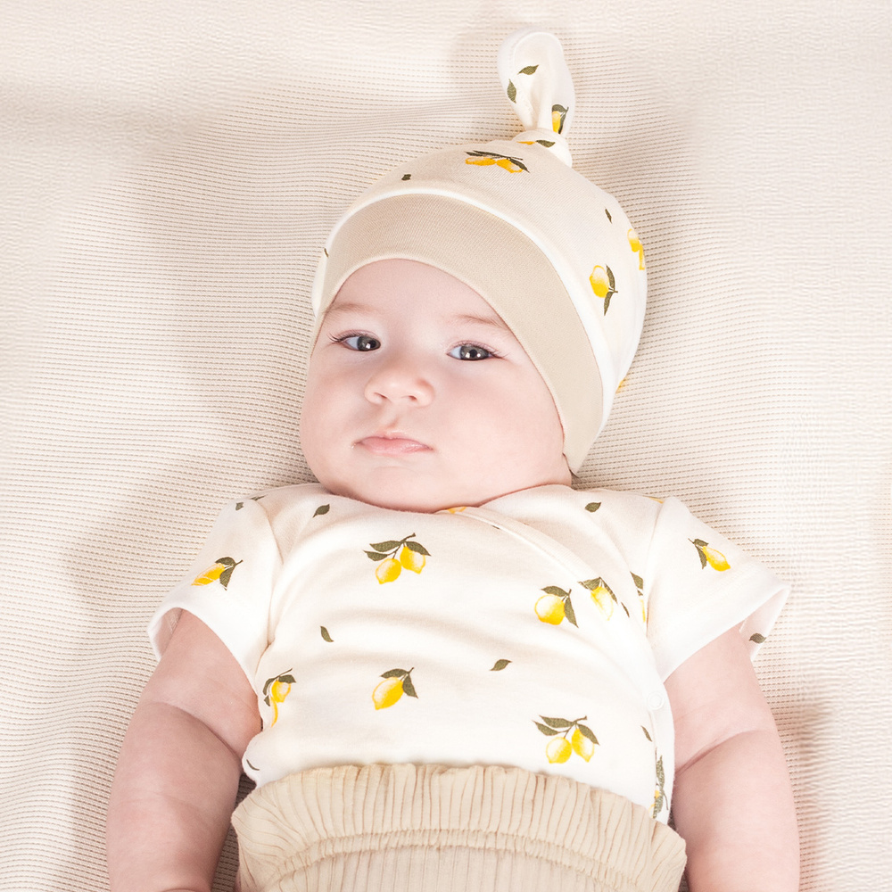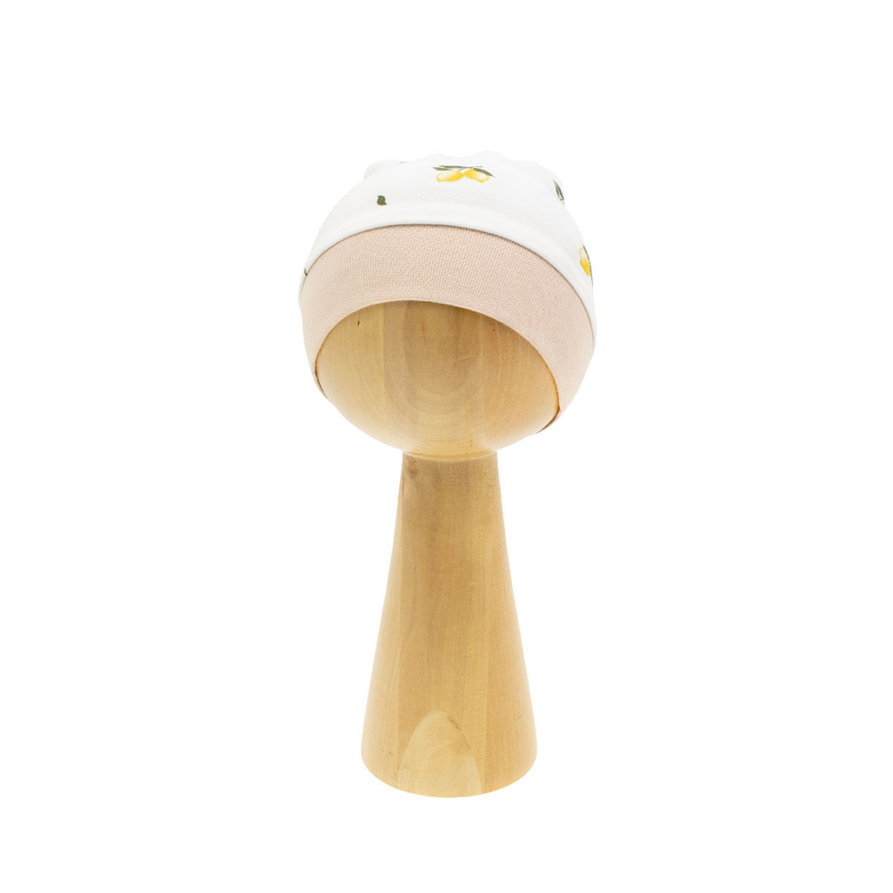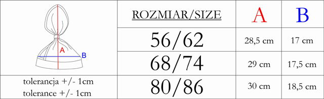 Chustka na głowę dla dziewczynki, idealna na gorące dni. Wykonana z drukowanej bawełny. Materiał posiada certyfikat Oeko-Tex Standard 100 Tekstylia godne zaufania. Produkt zdobi bezuciskowy ściągacz i lamówka w kolorze beżowym.