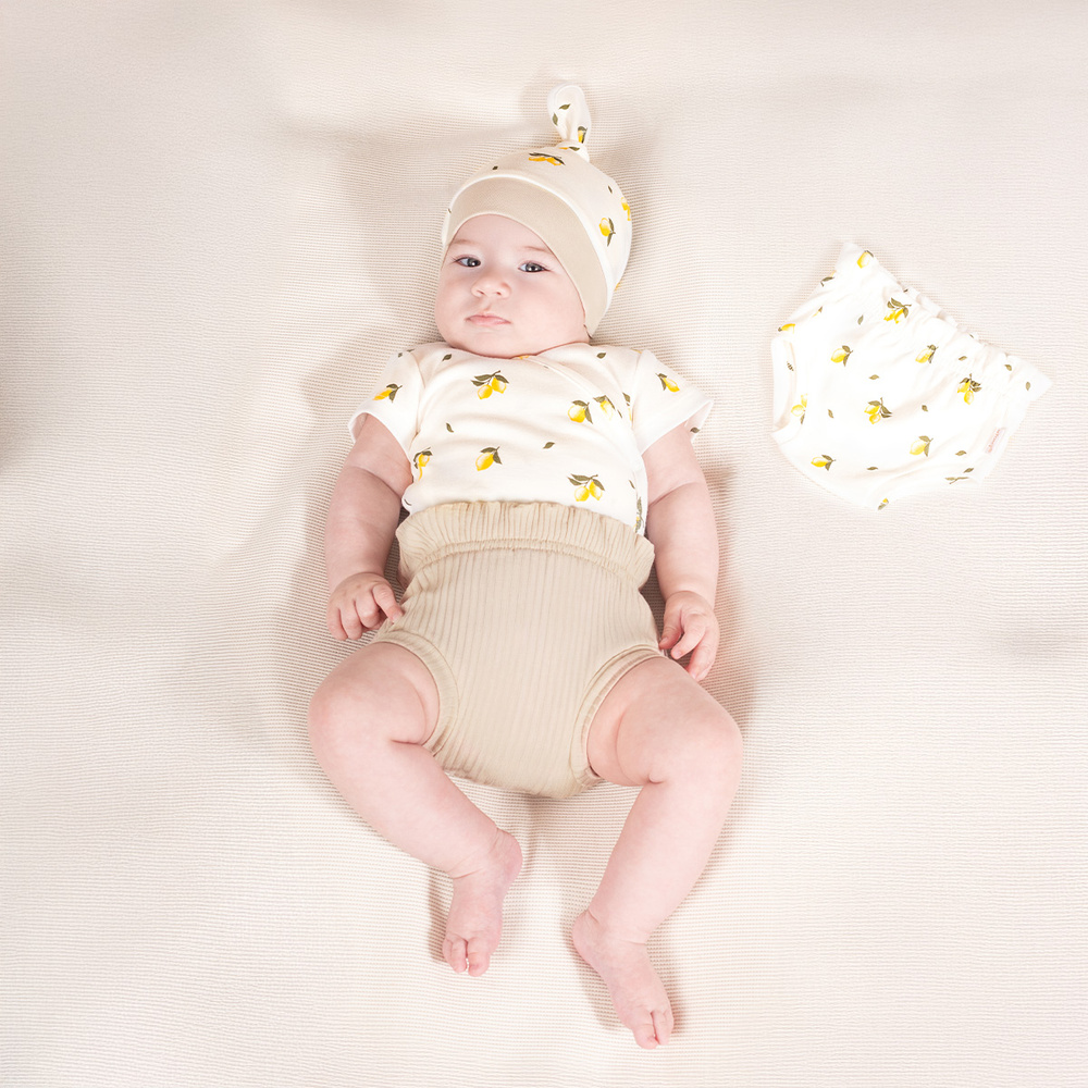Zapytaj o produkt2-pack bloomersów dla dziewczynki, idealne na upalne lato. Jedne wykonane z drukowanej bawełny w piękny wzór, drugie w kolorze beżowym. Materiał posiada niewielką ilość elastanu. Ubranko w talii posiada gumkę, która nie uciska brzuszka maluszka. W fasonie tym uzyskaliśmy falbankę w pasie, którą dopełnia kokarda. Materiał posiada certyfikat Oeko-Tex Standard 100 Tekstylia godne zaufania.