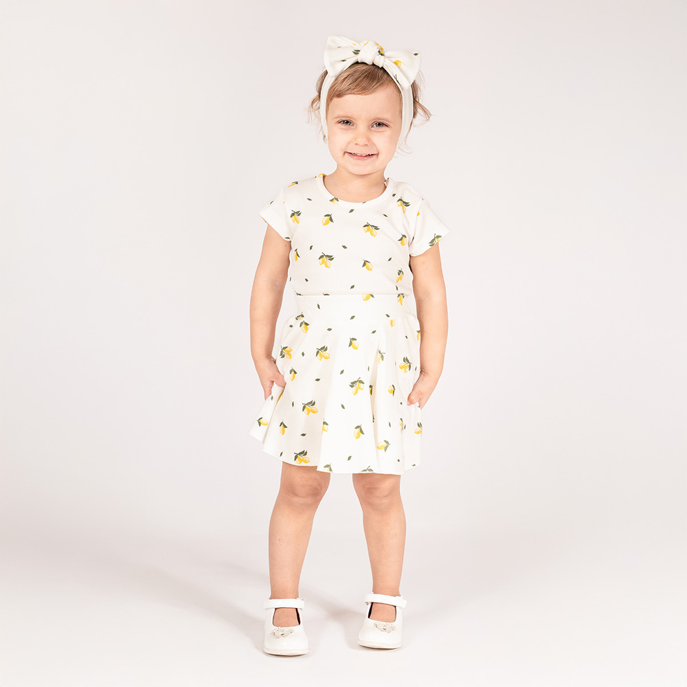Zapytaj o produktNie krępująca ruchów, wygodna spódniczka wykonana z 100% kremowej bawełny. Materiał posiada certyfikat Oeko-Tex Standard 100 Tekstylia godne zaufania. W pasie wszyto praktyczną gumkę, ułatwiającą ubieranie. Produkt zdobią dwie falbanki.