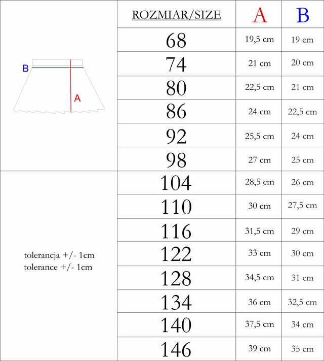 | Rozmiar | Obwód klatki piersiowej | Obwód pasa |