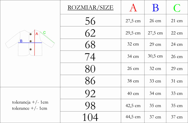 | Rozmiar | Obwód klatki piersiowej | Obwód pasa |