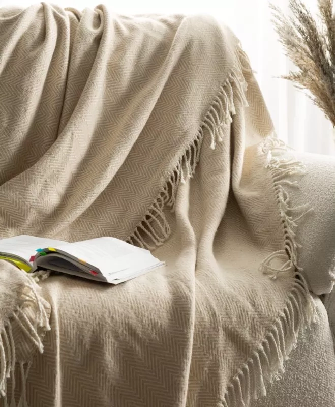 Zapytaj o produktElegancki i wyjątkowo miękki w dotyku dodatek do wnętrza, który sprawdzi się zarówno jako koc, jak i dekoracyjna narzuta na łóżko lub sofę. Wykonany z mieszanki bawełny i akrylu, charakteryzuje się przyjemną strukturą pledu oraz dekoracyjnymi frędzlami. Beżowo-kremowa kolorystyka nadaje mu uniwersalnego i stylowego wyglądu, pasującego do nowoczesnych i klasycznych aranżacji.