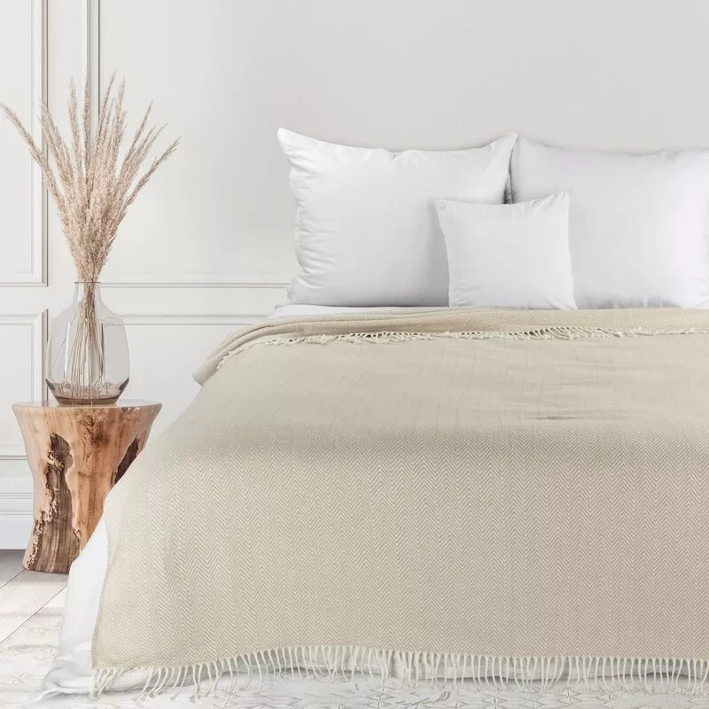 Pled 7 Koc narzuta z frędzlami Eurofirany beżowy