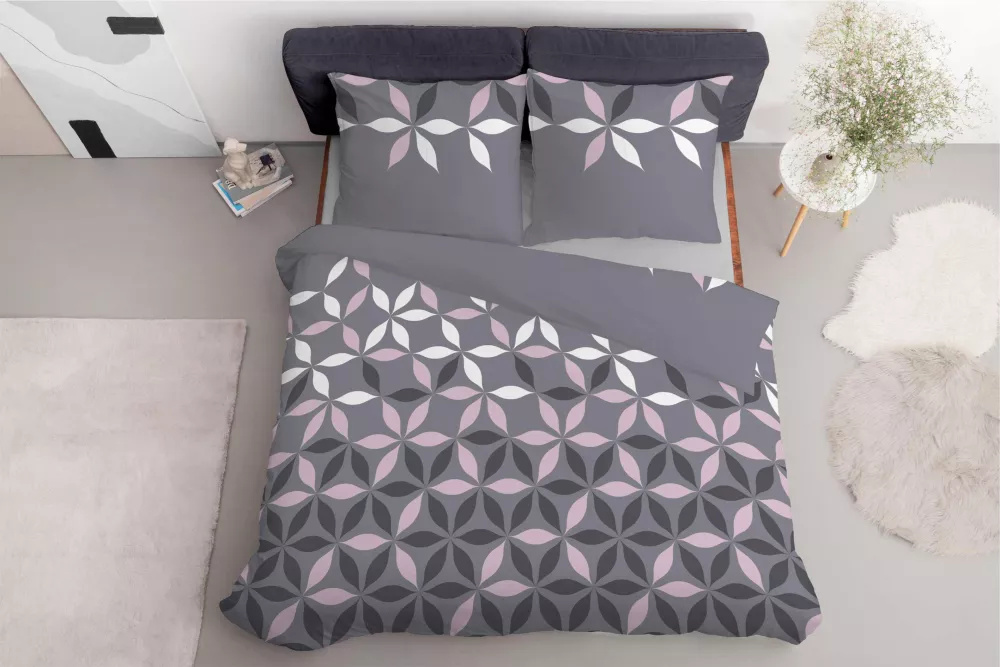 5024 A Pościel z mikrofibry kwiatki Detexpol szary