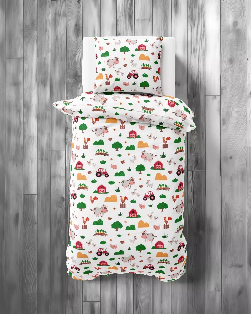 5439 A Wesoła Farma Mała Pościel dziecięca bawełniana Detexpol biały