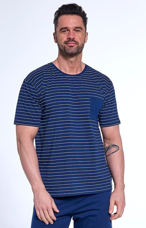 Piżama męska z wysokiej jakości bawełny. Koszulka z krótkim rękawem, dekolt okrągły.