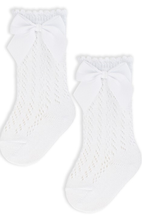 SB113 Podkolanówki niemowlęce ażurowe Noviti- białe