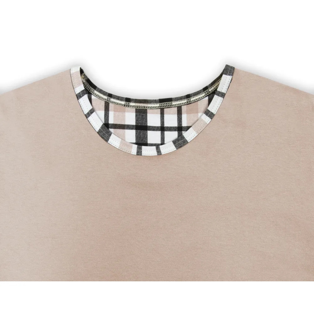Piżama męska z krótkim rękawem i krótkimi spodenkami wykonana jest z wysokiej jakości bawełny. T-shirt w modnym kolorze "kawy z mlekiem" oraz spodenki w kratkę. Spodenki mają w pasie szeroką gumę, dodatkowo ściągane są sznureczkiem. Spodenki mają też rozporek z dwoma guziczkami a po bokach wygodne kieszenie.