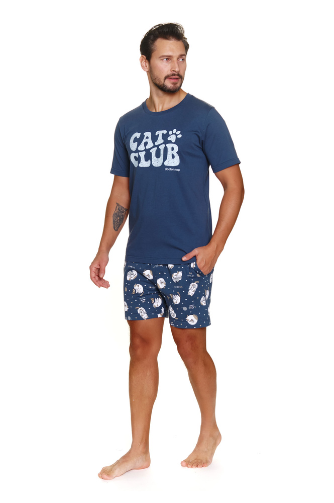 7204 "Cat club" Piżama Męska Doctor Nap - deep blue