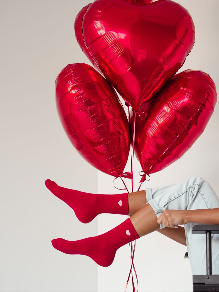 Eleganckie bawełniane skarpetki damskie ozdobione wzorami o tematyce walentynkowej.
