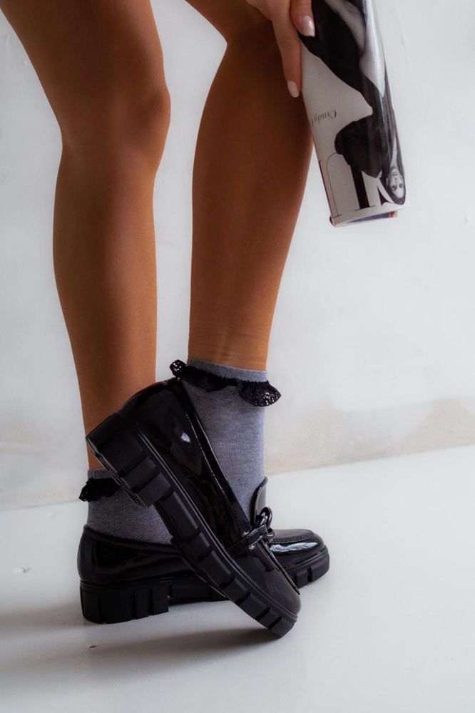 0897 Skarpety damskie z koronką Milena - jasny melanż 1 - czarna koronka