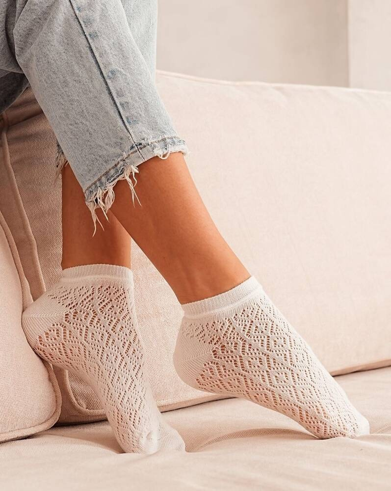 Ażurowe stopki damskie wykonane z wysokiej jakości bawełny z nieuciskającym ściągaczem.