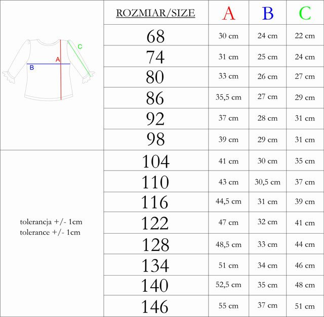 | Rozmiar | Obwód klatki piersiowej | Obwód pasa |