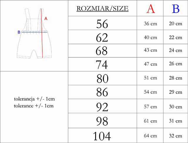 Zapytaj o produktOgrodniczki wykonane ze 100% bawełny. Zapinane na przodzie na drewniane guziczki, ułatwiające ubieranie i przewijanie dziecka. Wygodny fason ogrodniczek, gwarantuje, że spodenki zawsze pozostaną na miejscu, nawet podczas aktywnej zabawy.