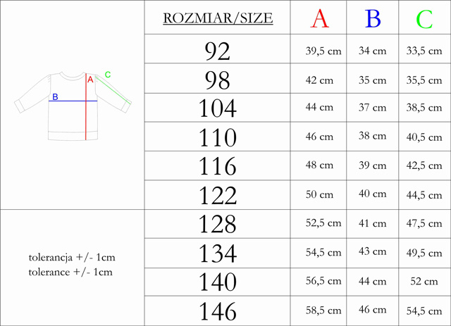 | Rozmiar | Obwód klatki piersiowej | Obwód pasa |