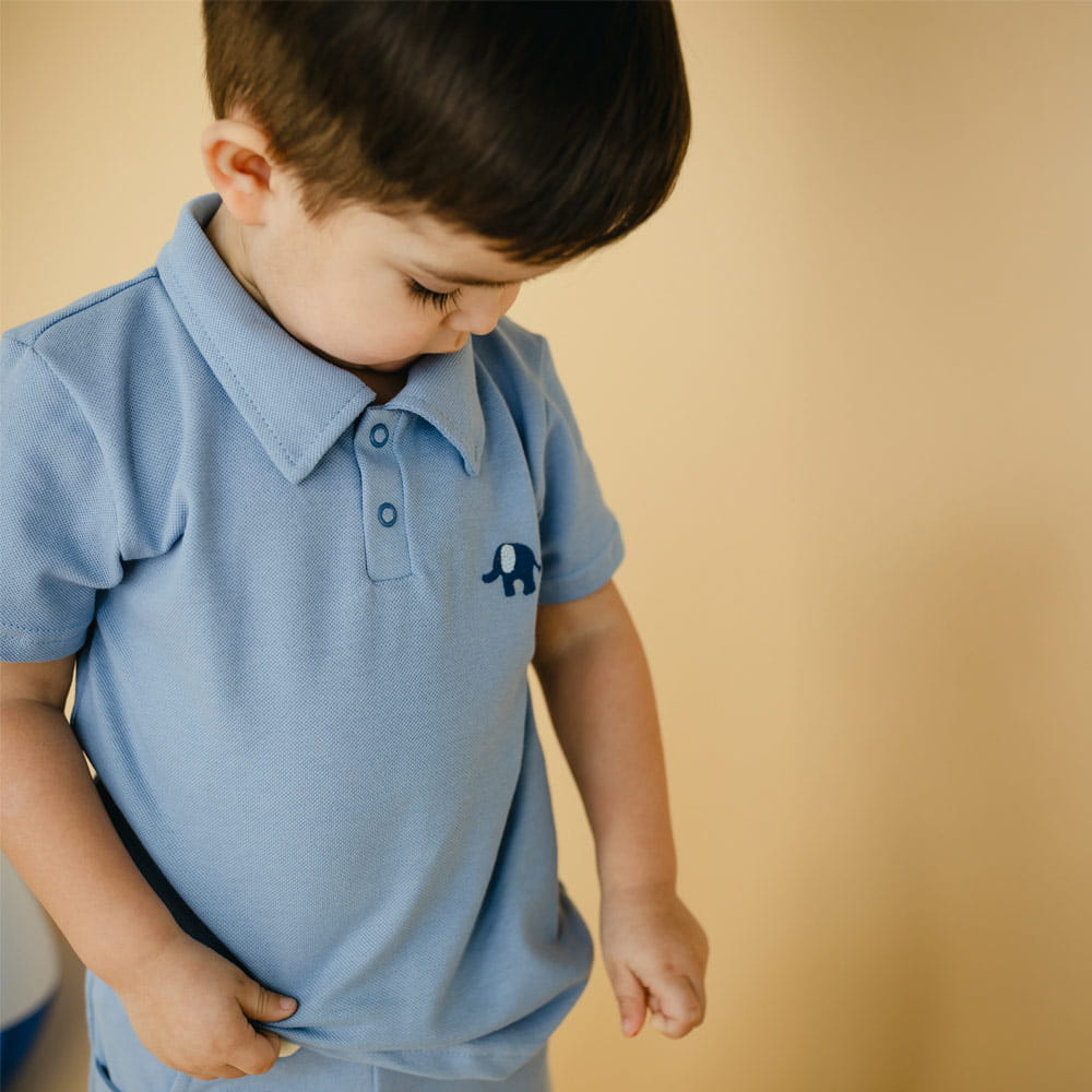 T-shirt polo dla chłopca z kolekcji Elephant , uszyty z miękkiej i przyjemnej w dotyku bawełny.
