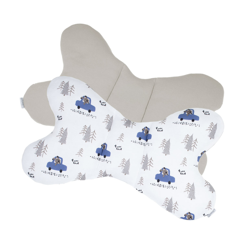 Motylek zapewnia komfort podczas podróży, niweluje wstrząsy w czasie jazdy samochodem lub wózkiem. Dzięki specjalnemu wyprofilowaniu idealnie dopasowuje się zarówno do główki dziecka, jak i do fotelika samochodowego. Motylek umili każdą podróż i utuli zmęczonego Maluszka do snu.