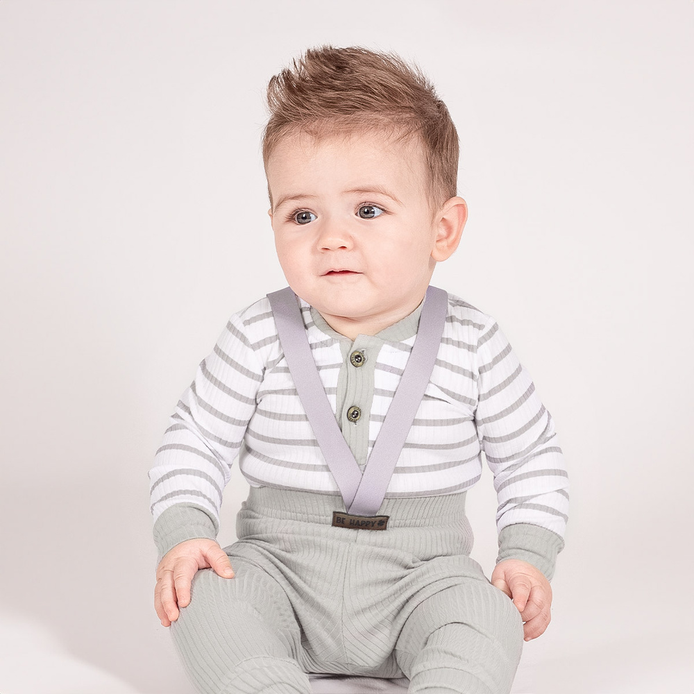 Szare body polo z długim rękawem dla chłopca. Uszyte z bawełny. Materiał posiada certyfikat Oeko-Tex Standard 100 Tekstylia godne zaufania. Produkt zapinany na przodzie na guziczki. W kroku na bezniklowe napy zapewnia to komfort przy ubieraniu. Rękawki wykończone bezuciskowym ściągaczem. Produkt bardzo wygodny, a zarazem elegancki. Uzupełni wiele stylizacji.