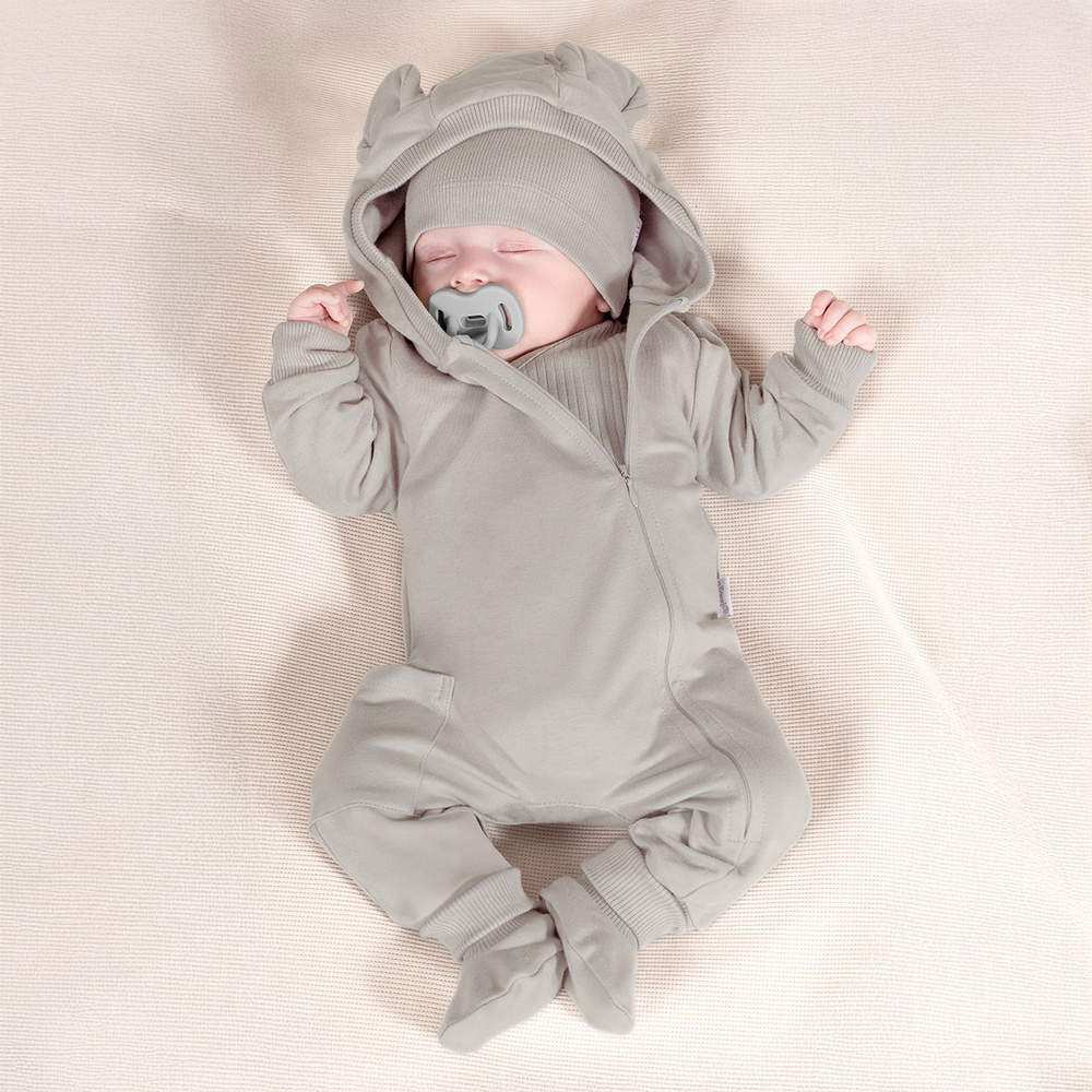 Zapytaj o produktPajac dresowy dla chłopca, uszyty z bawełny dresowej z niewielką ilością elastanu. Idealny do wózka, czy fotelika. Posiada ściągacze w rękawach, przy nogawkach oraz kaptur z uszkami. Dzięki wykonaniu z certyfikowanej bawełny dziecko będzie w nim się czuło wygodnie. Pajacyk zapinany na wygodny zamek-ułatwi to ubieranie maluszka.