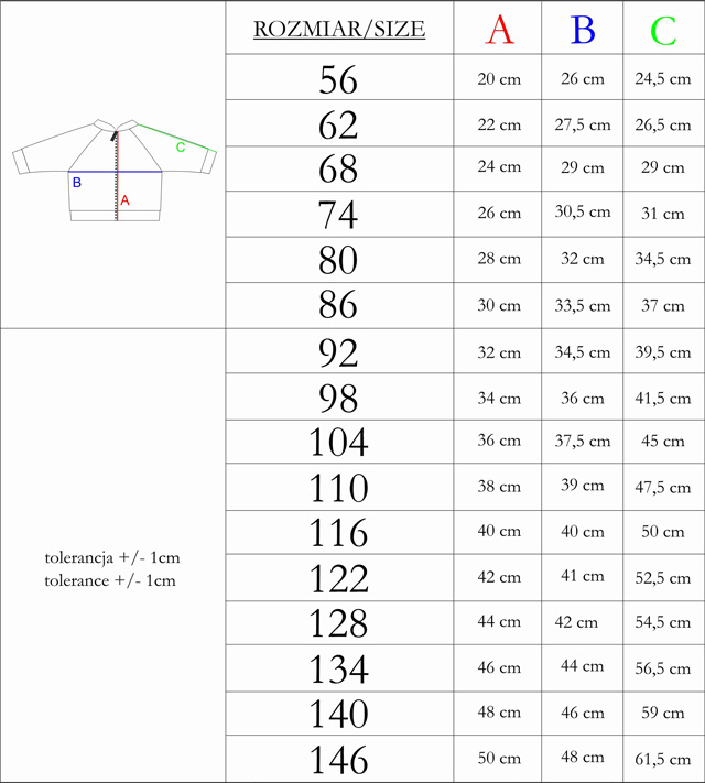 | Rozmiar | Obwód klatki piersiowej | Obwód pasa |