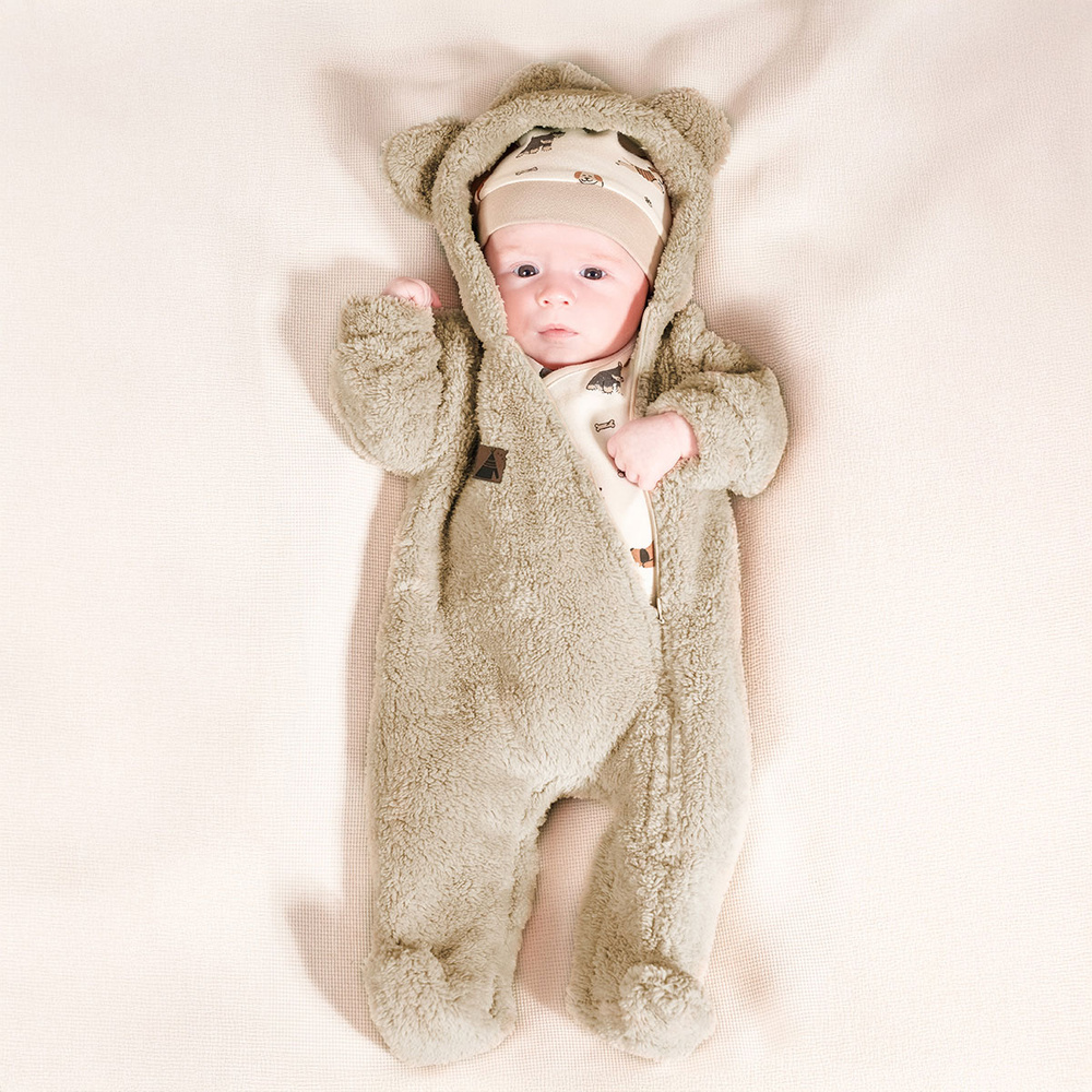 Pajac z luny. Został uszyty z przemiłego futerka, co sprawia, że ubranko idealnie nadaje się na chłodniejsze dni. Całość zdobi kaptur z uszkami. Pajac zapinany na wygodny zamek - ułatwi to znacznie ubieranie dziecka. Materiał jest całkowicie bezpieczny dla skóry maluszka. Posiada certyfikat Oeko-Tex Standard 100 Tekstylia godne zaufania.