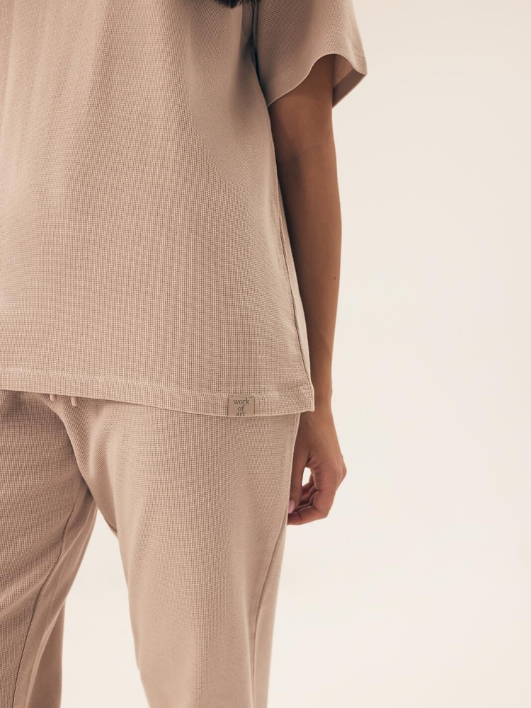 Do kompletu długie spodnie z wygodnymi kieszeniami.