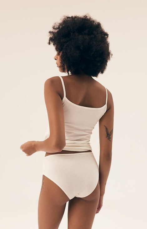 Figi damskie wykonane z wiskozy. Krój bikini. W pasie płaska gumka.