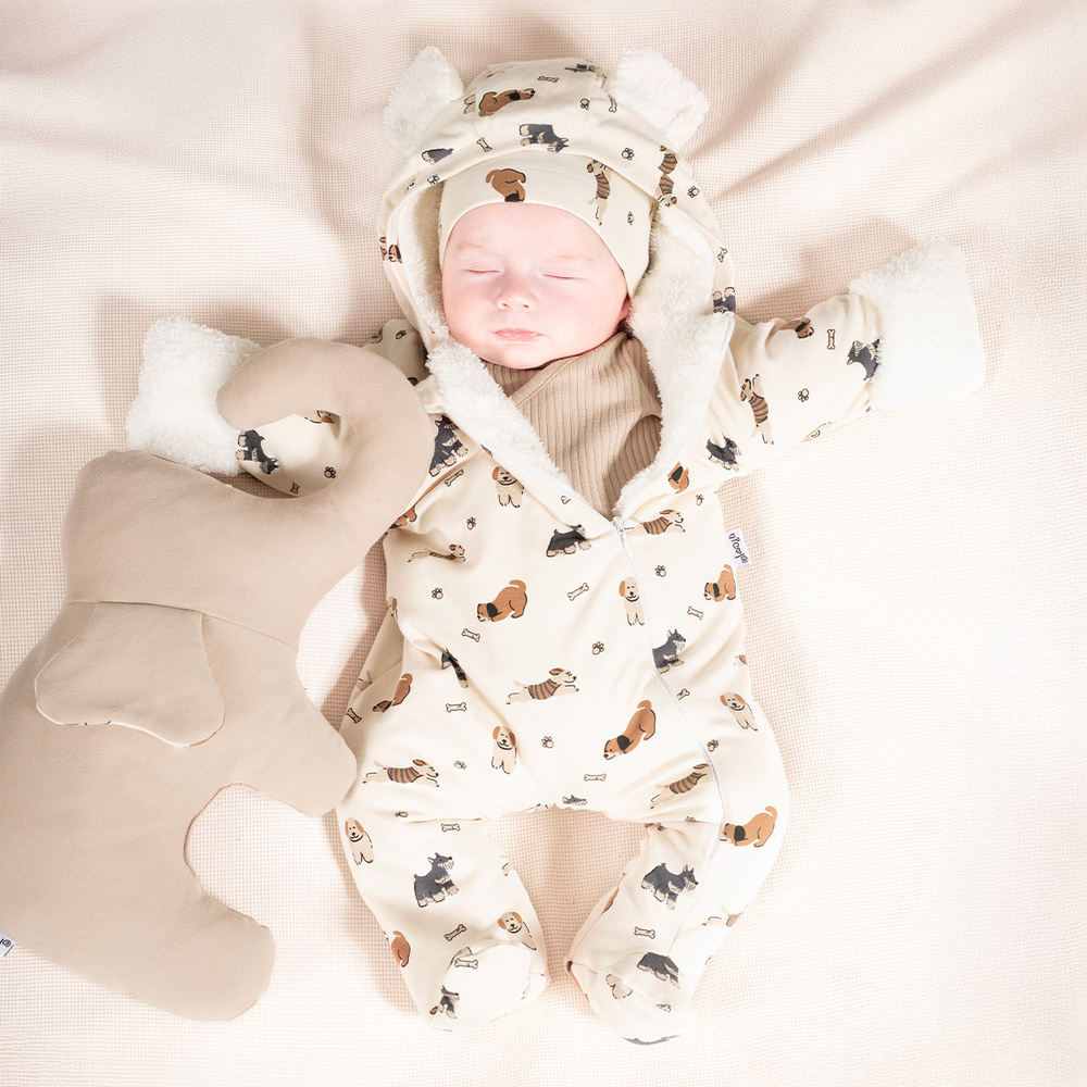 Zapytaj o produktPajac ocieplany wykonany z zewnątrz z bawełny dresowej z niewielką ilością elastanu. Podszyty został futerkiem w kolorze białym, co sprawia, że ubranko idealnie nadaje się na chłodne dni. Całość zdobi kaptur z uszkami. Ubranko posiada zawijane rękawy aby na dworze ochronić rączki dziecka przed zimnem. Na przodzie naszyta została naszywka z chmurką. Pajac zapinany jest na wygodny zamek - ułatwi to ubieranie. Materiał jest całkowicie bezpieczny dla skóry dziecka.