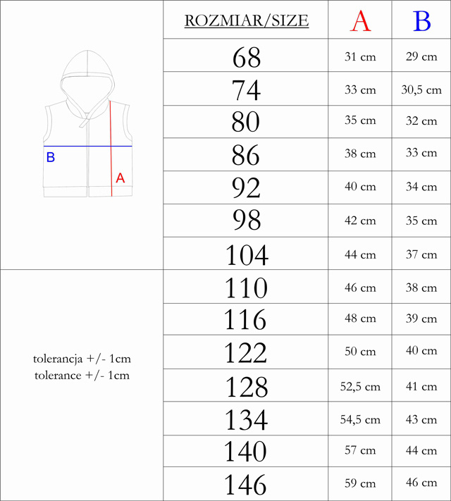 Zapytaj o produktBezrękawnik z kapturem, uszyty z bawełny dresowej. Kaptur oraz paszki wykończone są ściągaczem. W fasonie tym zastosowano przedłużony tył, co nadaje uroku. Materiał jest całkowicie bezpieczny dla skóry dziecka.